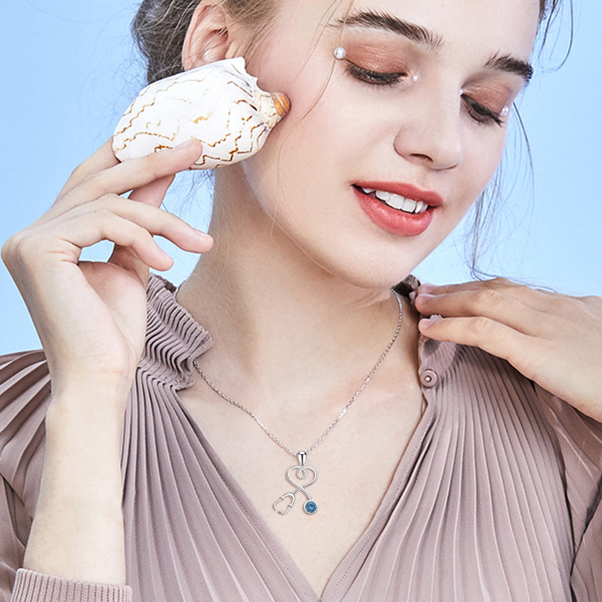 Nurse Doctor Stethoscope Necklace 925 Sterling Silver with Charm Pendant