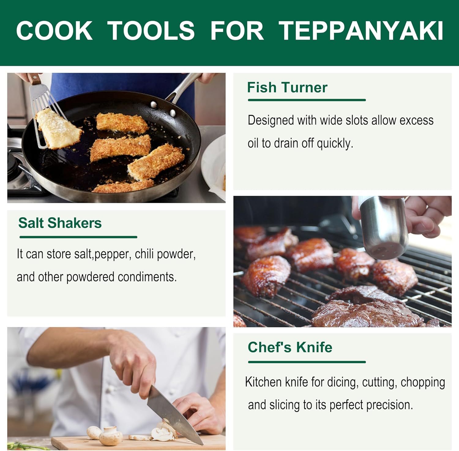 - Professional Chef's Choice - Featured the properties of anti-scratching and anti-slip which is relying on a combination of well-design, exquisite craftsmanship and solid construction, these griddle tools are used by professionals and establishments for their kitchen. With the complete flat top griddle accessories set, you could make delicious burgers, juicy steak, perfect pancakes and flavorful cuisines from start to finish with ease like a pro!